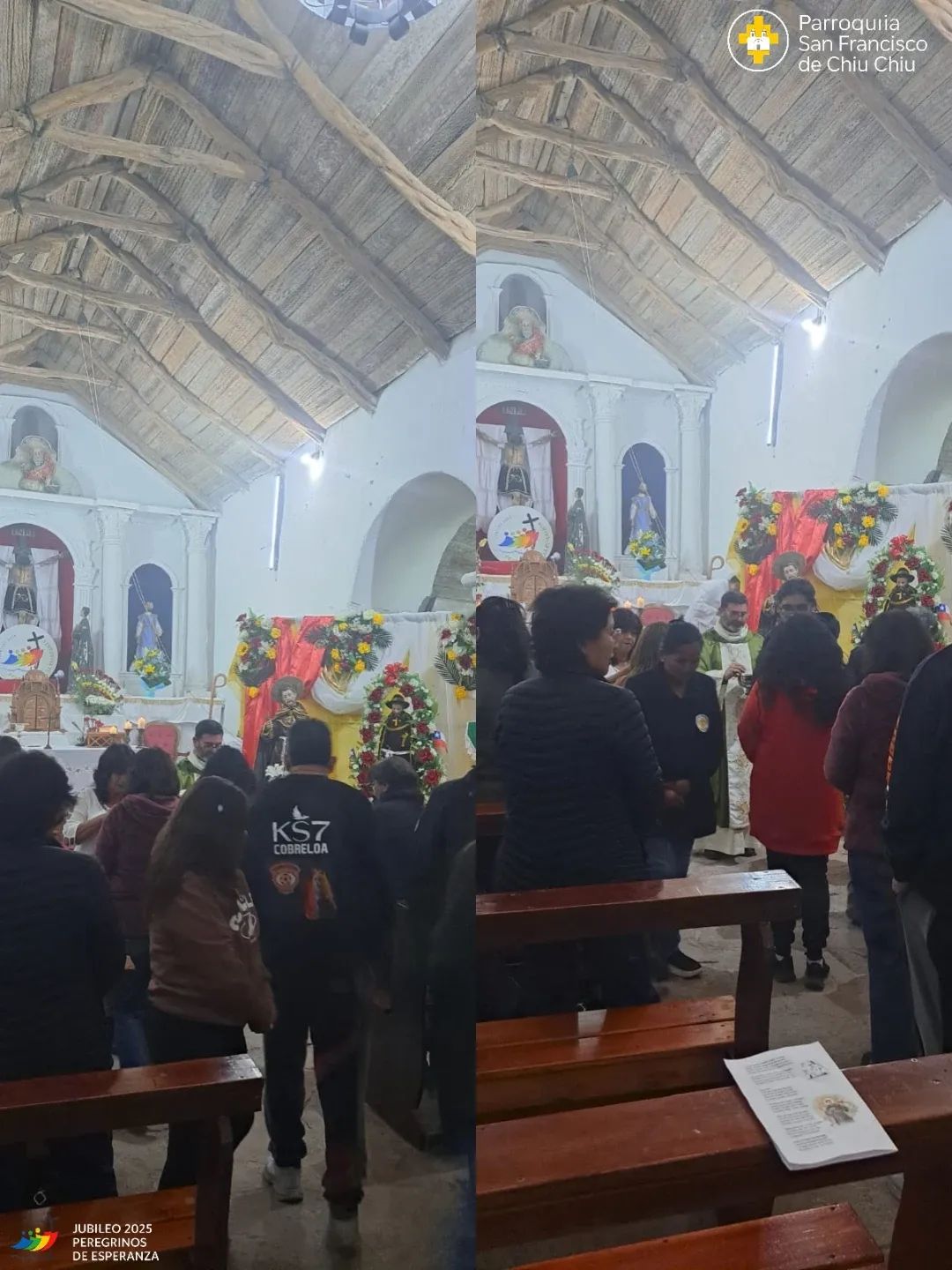 La Santa Misa fue presidida por Monseñor Thomas Carrasco Cortés, en un ambiente de oración, comunión y unidad comunitaria, fortaleciendo los lazos de fe entre los pueblos del Alto El Loa. 🌺✨